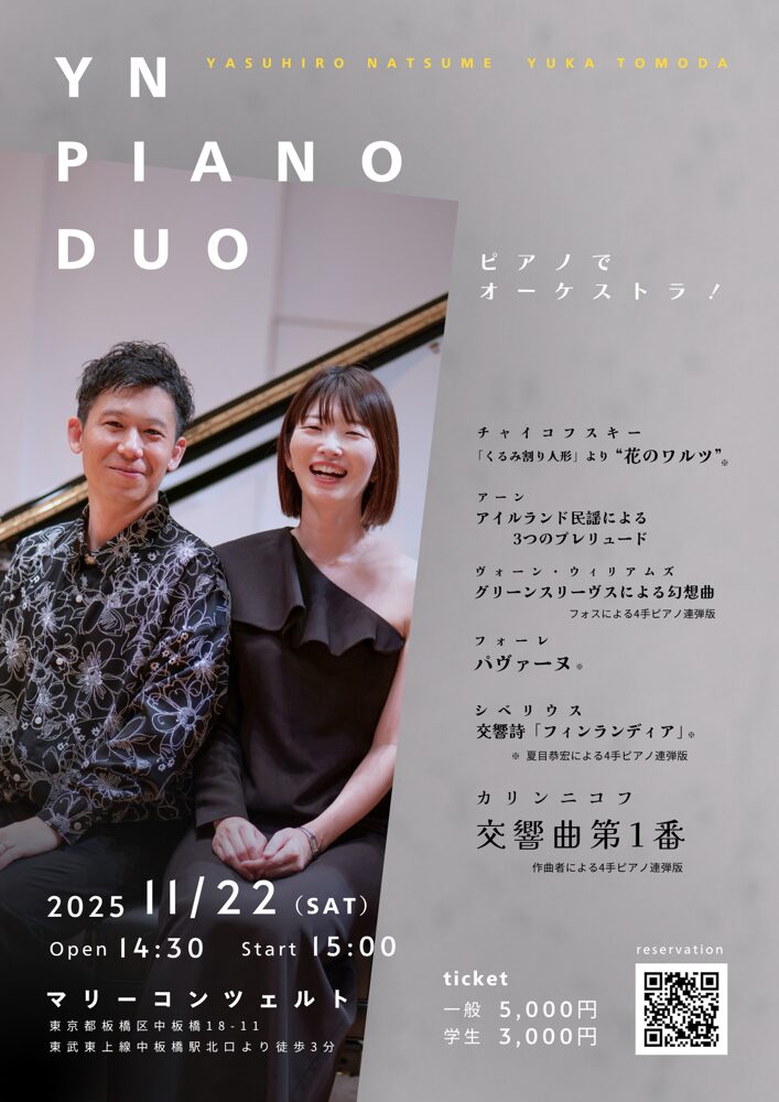 本日は私の友人夫妻のピアノデュオコンサートのご案内をさせてください♪